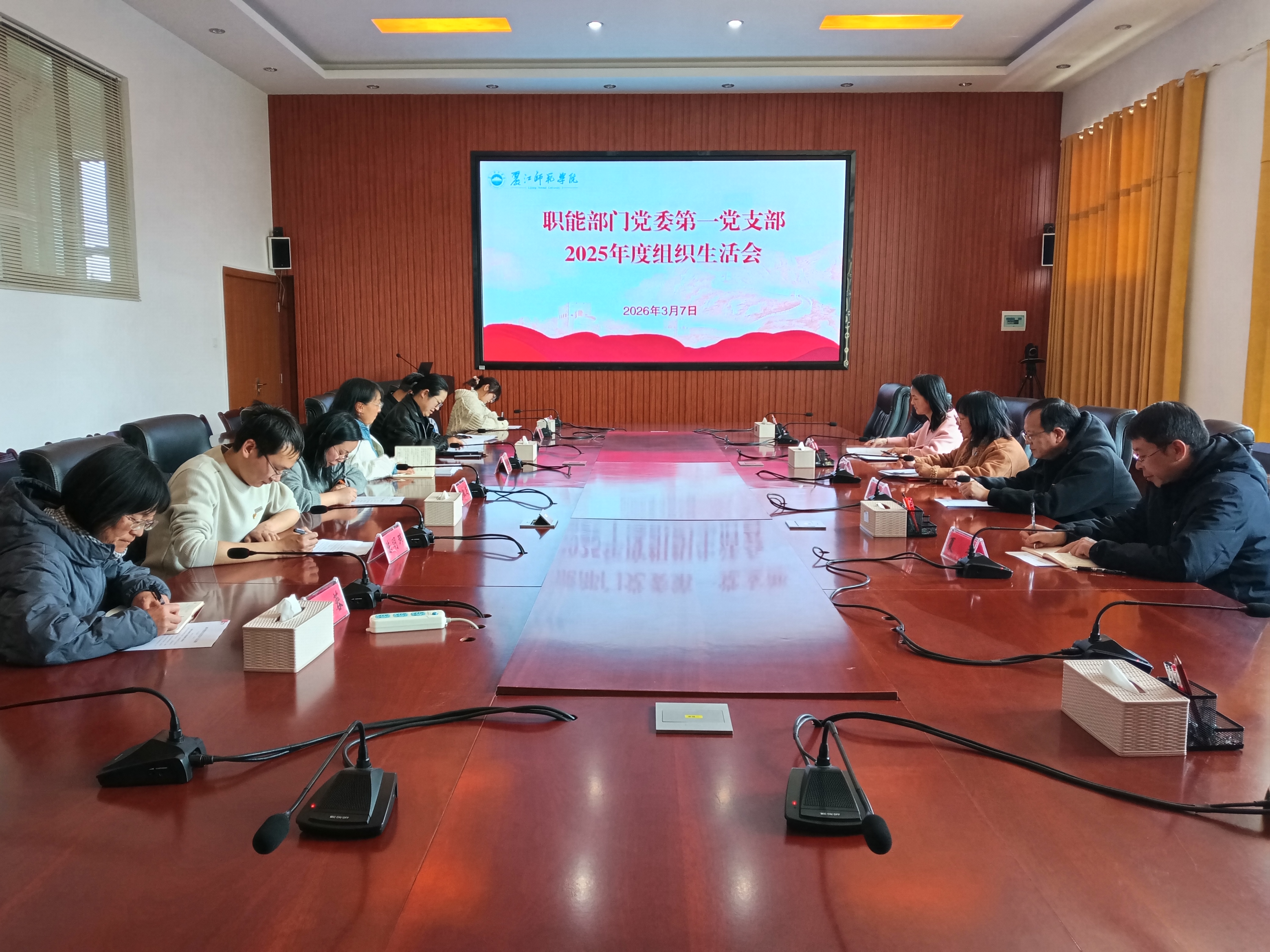 2026年3月7日,职能部门党委第一党支部在第三会议室召开2025年度组织生活会,党支部书记袁野主持会议,职能部门党委陆佳到会指导,支部全体党员参会。